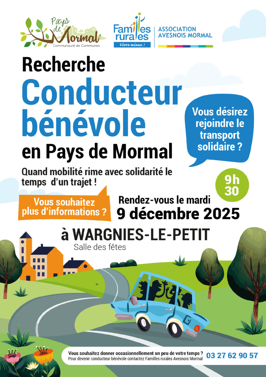 Le Pays de Mormal recherche actuellement des conducteurs bénévoles pour l'accompagner au développement du transport solidaire !